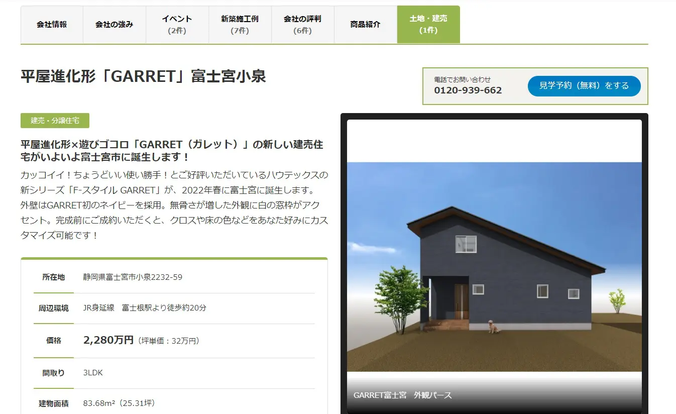 【お知らせ】WEBイエタテに新築建売住宅・GARRET富士宮小泉の情報を掲載しました!(外部リンク) 2021年12月23日 2023年11月6日 NEWS WEBイエタテのハウテックスのページ【土地・建売】コンテンツに、2022年春完成予定の建売住宅『GARRET富士宮小泉』の情報を掲載しました。 WEBイエタテのページを見る⇒